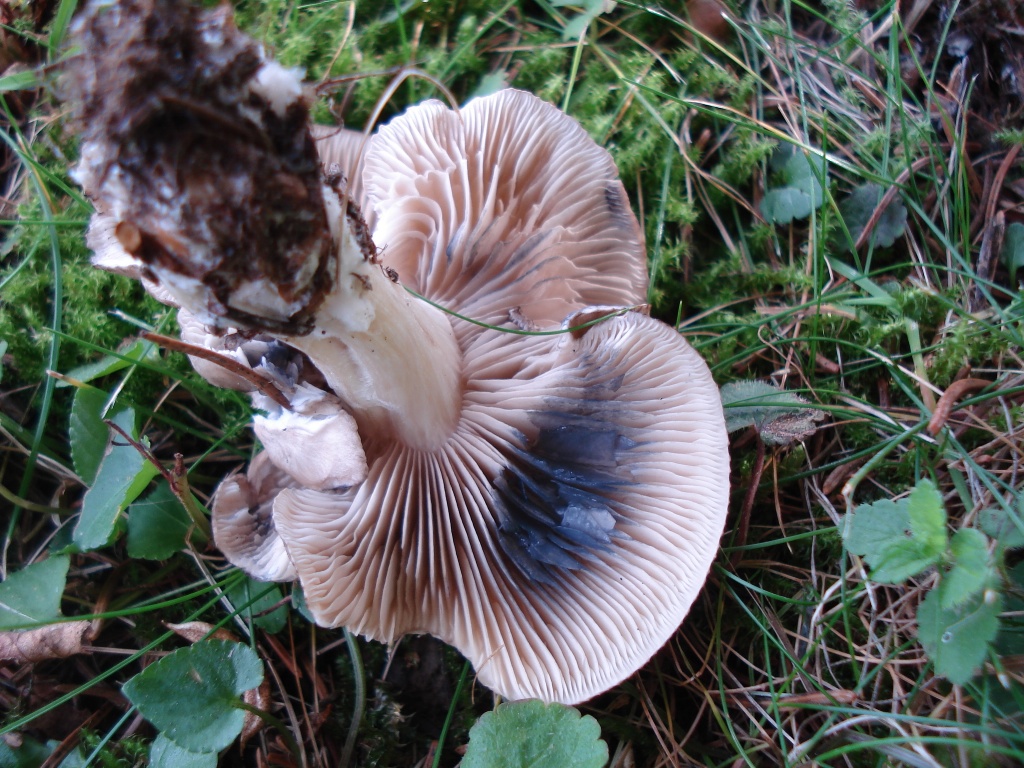 Bizarrement ce weekend, à une expo, il y avait une groupe de Lyophyllum entièrement maculé (pas seulement les lames, mais le chapeau aussi) du