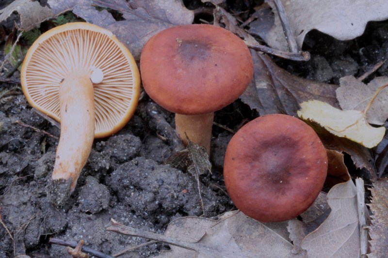 Sous feuillus, je ne vis d'abord que le chapeau et me suis écriée : "oooh un le joli sanguin !" en pensant au cortinaire. Mais de plus près et en faisant le ménage autour de lui, je m'aperçois que c'est un lactaire.