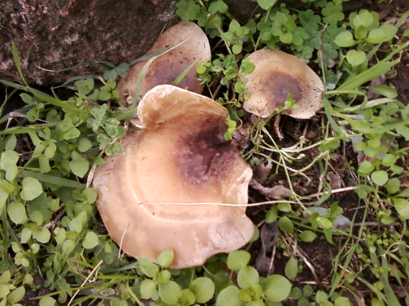 exemplaires formant des petites touffes, trouvés dans mon jardin le 25 nov 10,après un épisode fortement pluvieux et un refroidissement marqué.dans l'herbe à une quarantaine de cm d'un vieux rosier.
