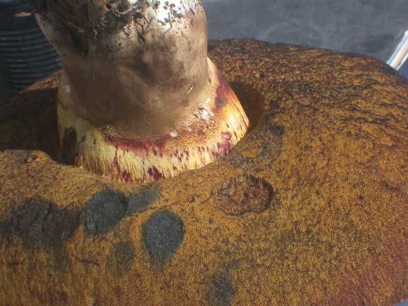 un peu de parcimonie dans les photos serait souhaitable... Il n'est pas nécessaire d'en mettre autant. En l'occurrence, ici, le gros plan sur la chair, les détails des pores et du pied, la seconde photo du chapeau ne sont pas utiles. On a suffisamment d'infos avec ta description et les autres photos.