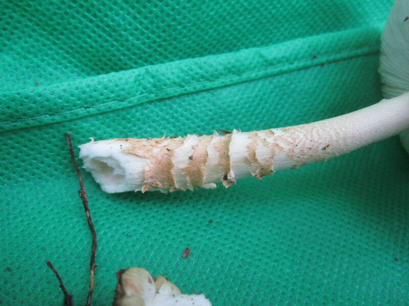 brun-orangé du pied. J'ai compris que nous sommes ici dans la catégorie d'amanites sans anneau, mais quelle est la nature de ces déchirures ?