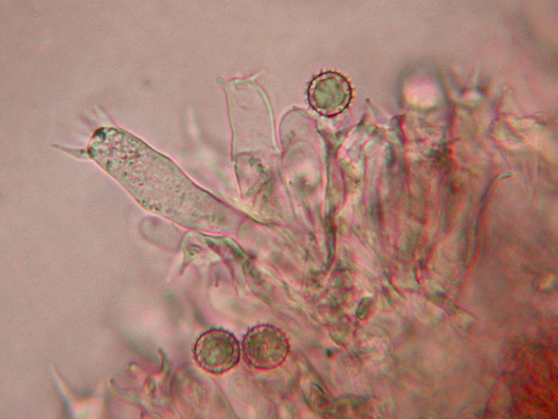 Voici une autre photo des spores... ... et une photo de baside, avec ce commentaire de J-P Dechaume :