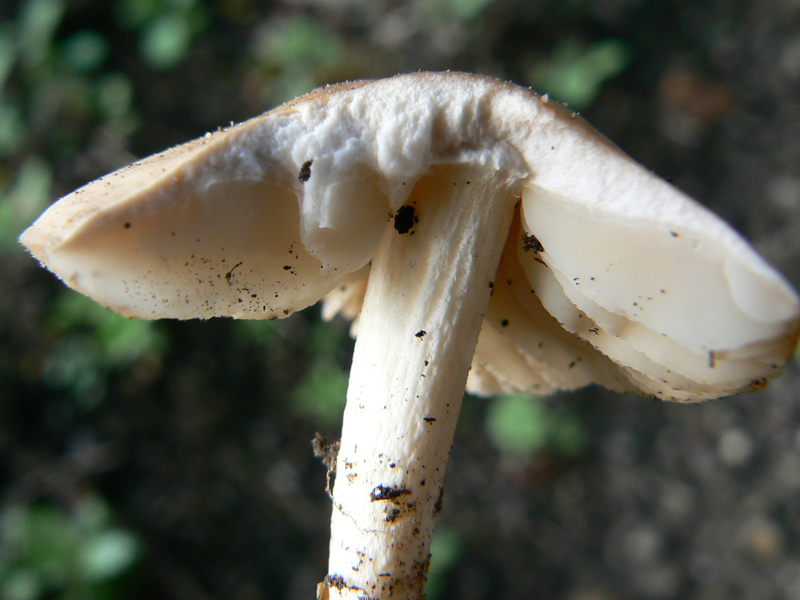 je ne connais pas bien ces champignons (et je n'y ai jamais goûté...), trouvé dans un parc, aux pieds de marronniers. Je n'ai pas pensé à tester son élasticité en le tordant, mais le stipe est coriace et me semblait effectivement élastique en le cueillant. La marge est cannelée, le stipe blanc-crème.