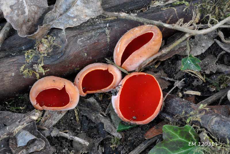 Les poils de l'excipulum, droits chez S. coccinea, flexueux chez S. austriaca peuvent aider à confirmer l'identification.