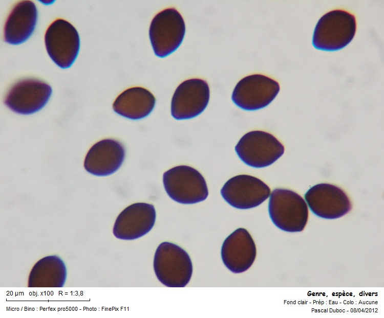 oui ma première idée m'avait dirigé vers fimicola, mais il n'y a aucune chrysocystide... donc si on suit FN, on zappe fimicola, la taille des cheilocystides est supérieure à celle de fimicola donnée au maxi entre 25 et 32, dans mon cas ça varie de 30 à 45 maxi... le pore germinatif est clairement centré, la forme des spores varie bien amygdaloide et rhomboide, parfois transclucide