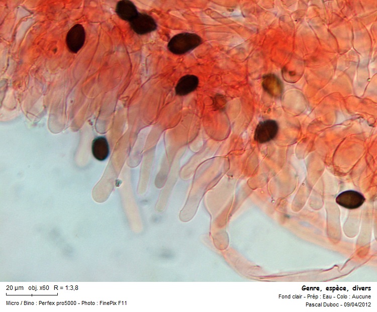 oui ma première idée m'avait dirigé vers fimicola, mais il n'y a aucune chrysocystide... donc si on suit FN, on zappe fimicola, la taille des cheilocystides est supérieure à celle de fimicola donnée au maxi entre 25 et 32, dans mon cas ça varie de 30 à 45 maxi... le pore germinatif est clairement centré, la forme des spores varie bien amygdaloide et rhomboide, parfois transclucide