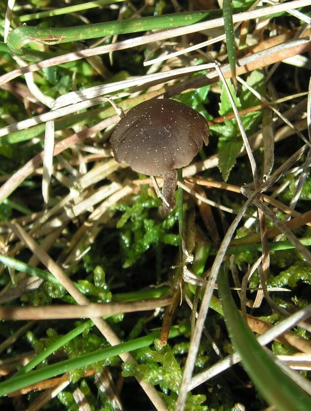 Psilocybe montana, espèce fréquente dans les muscinées, du moins en régions atlantiques, la cuticule semble ne pas convenir (articles courts) et le stipe ne serait pas poudreux sur toute la longueur.