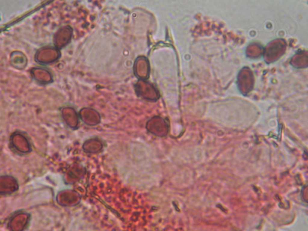 ok pour le voile blanc, pour les spores <10µ x 5-6µ et P.G. évident , Boucles +++