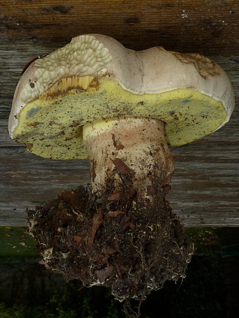 Bleuissant à la coupe, mais pas très rapidement. Pores bleuissant au toucher.