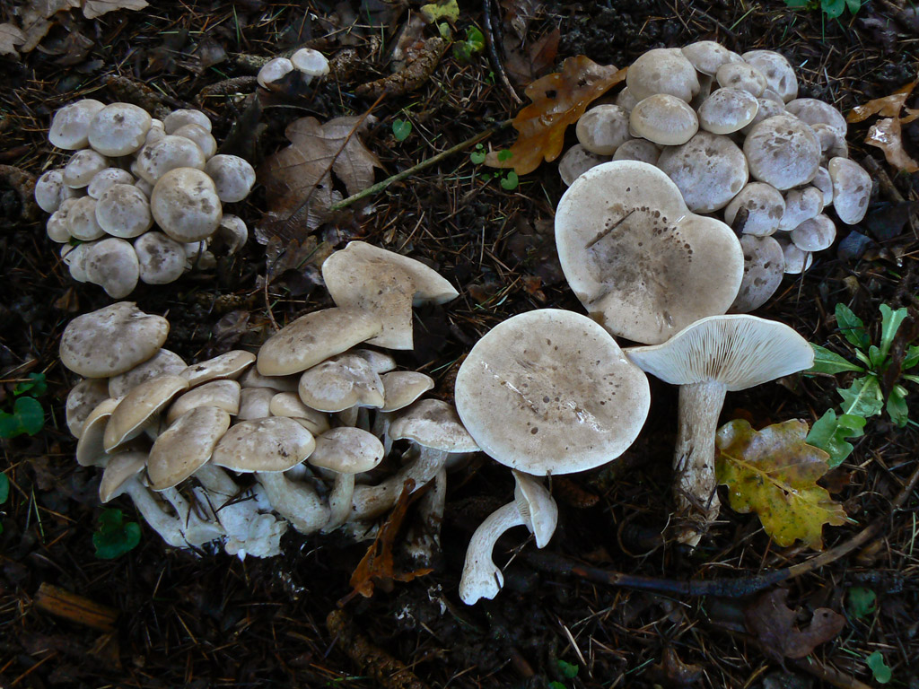 Dans le cas qui nous intéresse, la photo laisse penser à L. caespitosa par la silhouette et le nombre. Par contre, le givre de la cuticule nous fait pencher plus vers L. densifolia. Ce dernier n’est déprimé que tardivement mais par contre, les lames sont décurrentes déjà au début.
