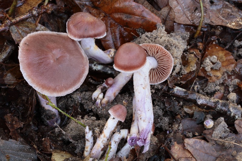Hier, ces cortinaires sous chênes...hygrophanes, odeur pas vraiment de radis, saveur douce, chair cassante et d'emblée du lilacin-violet apparait, surtout à la base du stipe.