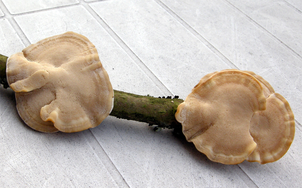 Oui, bien vu Fifi avec juste le dessous. A vrai dire la couleur beige de cet hyménium m'a un peu surpris sur des exemplaires aussi jeunes. Le GEPR dit "pores blancs" et Courtecuisse "hyménium pâle" mais Marchand dit bien "blanc ou crême puis jaunissant". Et après tout il ne s'appelle pas versicolor pour rien.