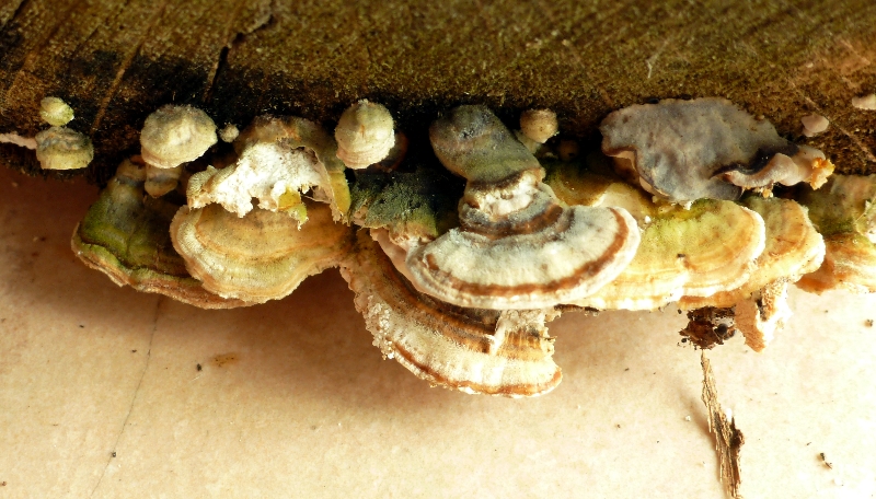 - l'épaisseur du chapeau (en dessous disons de 5 mm, plutôt T.versicolor, au dessus plutôt T.ochracea)