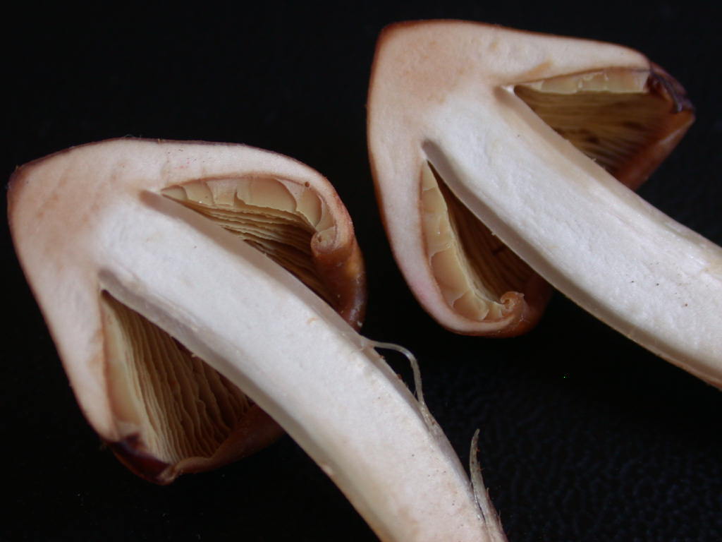 Lames: ± ascendantes, un peu ventrues, sublibres, d'une jolie couleur ocre-brun vif.