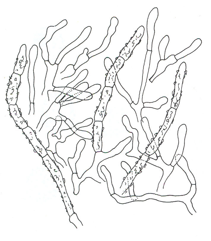 A titre de comparaison, voilà la représentation micro des poils du revêtement selon Sarnari (Genere Russula in Europa T 2, p 1380).