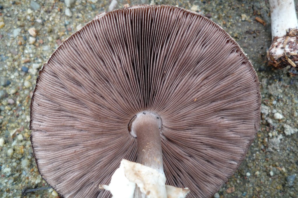 Les lames sont libres, serrées, brun-foncée/rosâtre foncée.