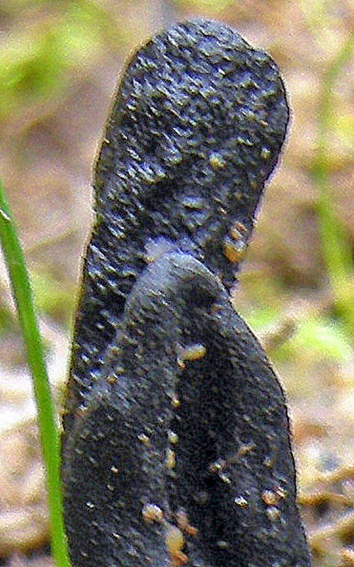 Je n'ai pas pensé à sortir la loupe (il faut dire que j'ignore tout des subtilités de ces espèces), mais en agrandissant (ci-dessous) une autre de mes photos, on voit un léger flou mais guère de poils, ou alors inférieurs au dixième de mm. Ça peut être Trichoglossum ?