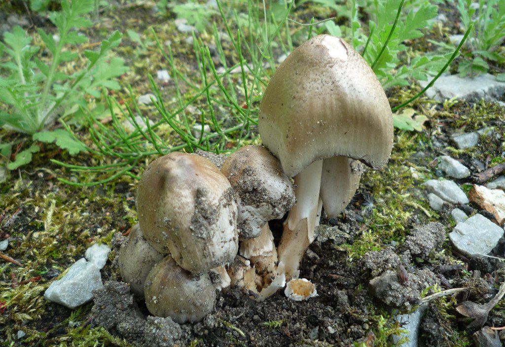 Quelques coprins trouvés ce jour, poussant en touffes, en bordure de chemin caillouteux-terreux, à même le sol. Plusieurs arbustes et un érable se trouvent alentour.