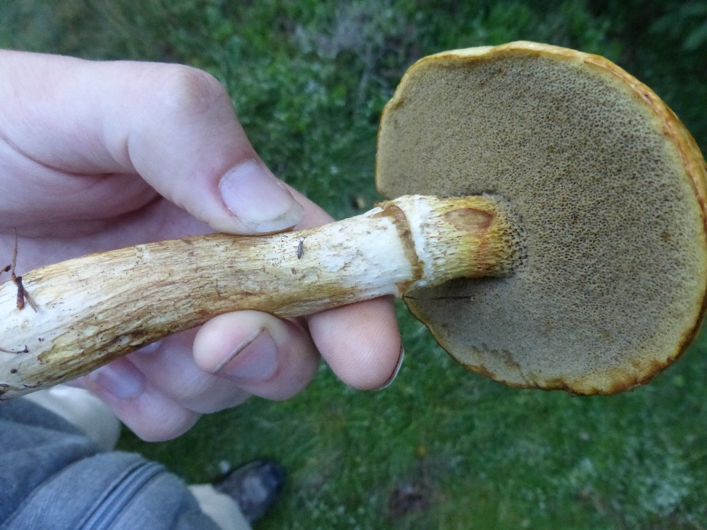 Oui en effet, une coupe pour voir un éventuel bleuissement c'est ça? Je n'ai pas encore le réflexe de penser à tout ce qu'il faudrait que je remarque pour identifier le champignon mais je compte bien essayer de corriger au mieux les défauts de mon organisation ... Ceci dit ne peut-on pas songer à un autre champignon que S. grevillei étant donné la couleur plutôt grise des pores, à moins que cela soit un effet de la vieillesse...