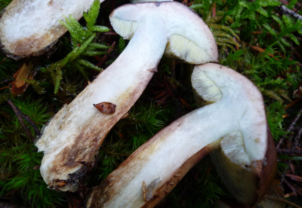 Pores : jaune assez pâle mais lumineux, verdissant assez lentement au toucher ou à la blessure puis grisonnant. (La photo n°2 montre les deux stades).
