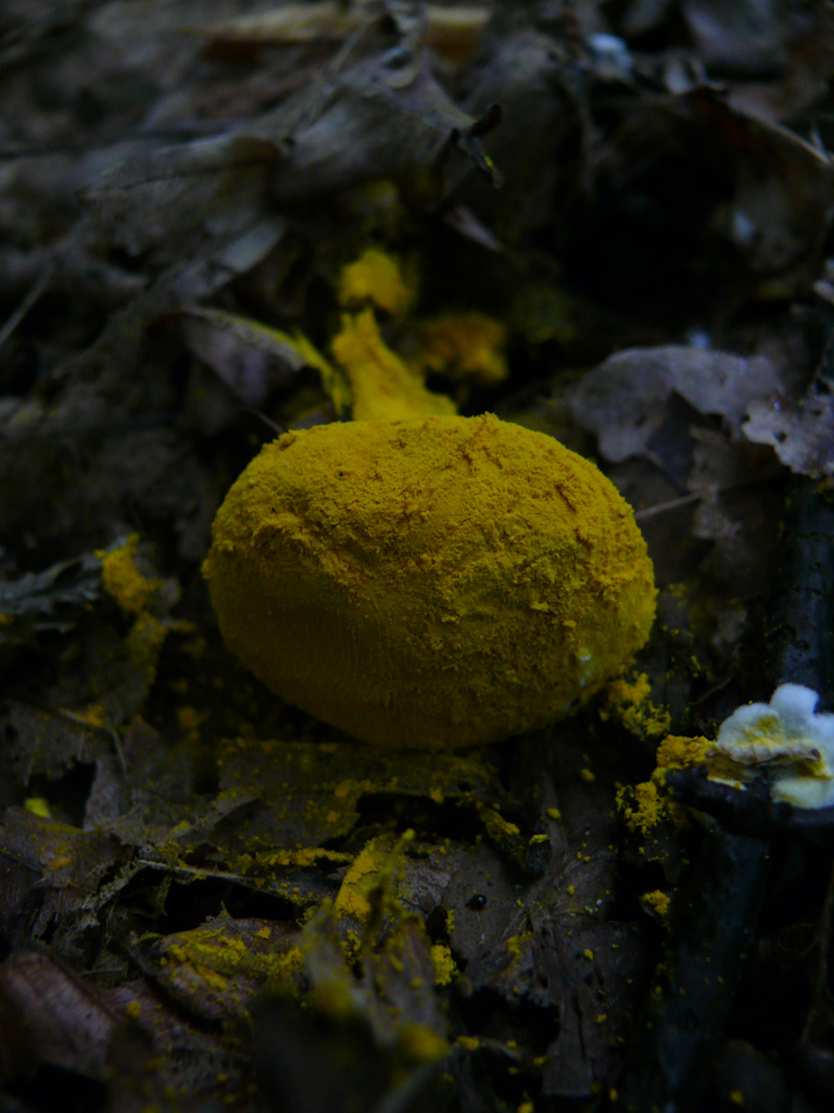 j'ai trouvé aujourdh'ui ce drole de champignon dans une foret de bois mélé. l'éxempalire jaune se trouvait dessous le blanc qui me semble etre le même champignon a un stade avancée. un stipe est présent mais si la texture visqueuse fait penser a un myxomycete. pas d'odeur particulière ...je n'ai pas gouté ce champignon qui s'est vite retrouvé a l'état de "creme" sous mes doigts.