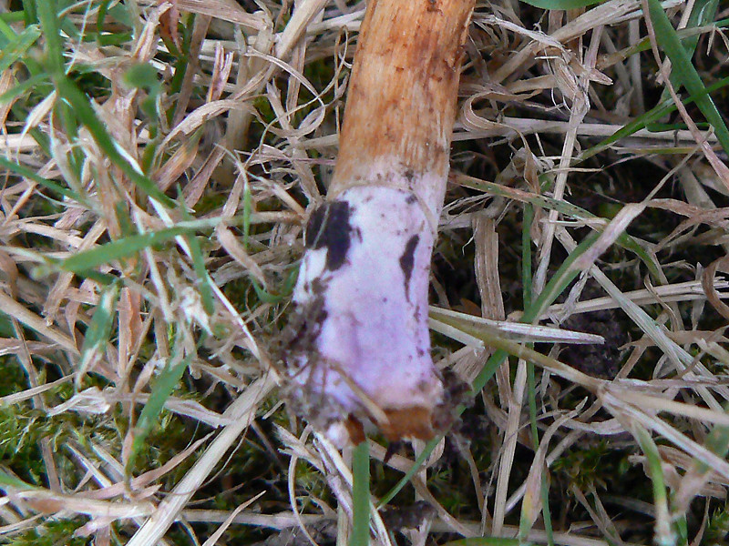 Je me permets d'ajouter ces photos prises le lendemain de notre récolte (forêt de Juigné 21 septembre). Récolte dans une zone fréquemment inondée. Les couleurs sont donc plus ternes mais on voit la très nette couleur lilacine à la base du stipe. Je pense qu'il mérite d'être renommé C. basililaceus à la place de C. lacustris annoncé sur place. Mine de rien, ce sujet a été très enrichissant car il me permet d'ajouter une espèce encore non répertoriée dans nos inventaires depuis 1989.