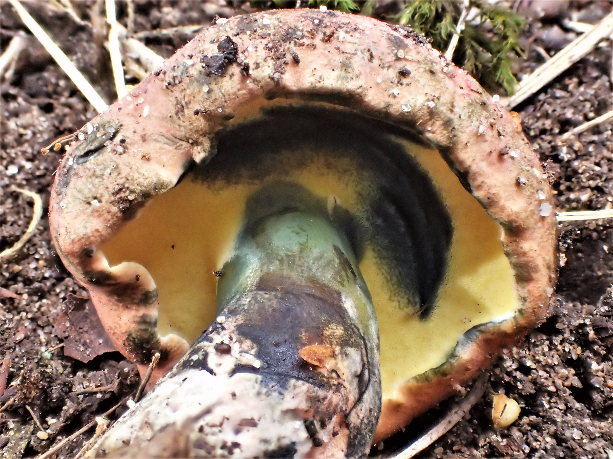 C. pulverulentus est le premier bolet auquel je pense lorsque je vois un tel bleuissement. Un doute subsistait, avec ces couleurs vives... doute levé grâce à la photo de J. Gimberteau sur MycoDB et le site sur la vallée du Ciron.