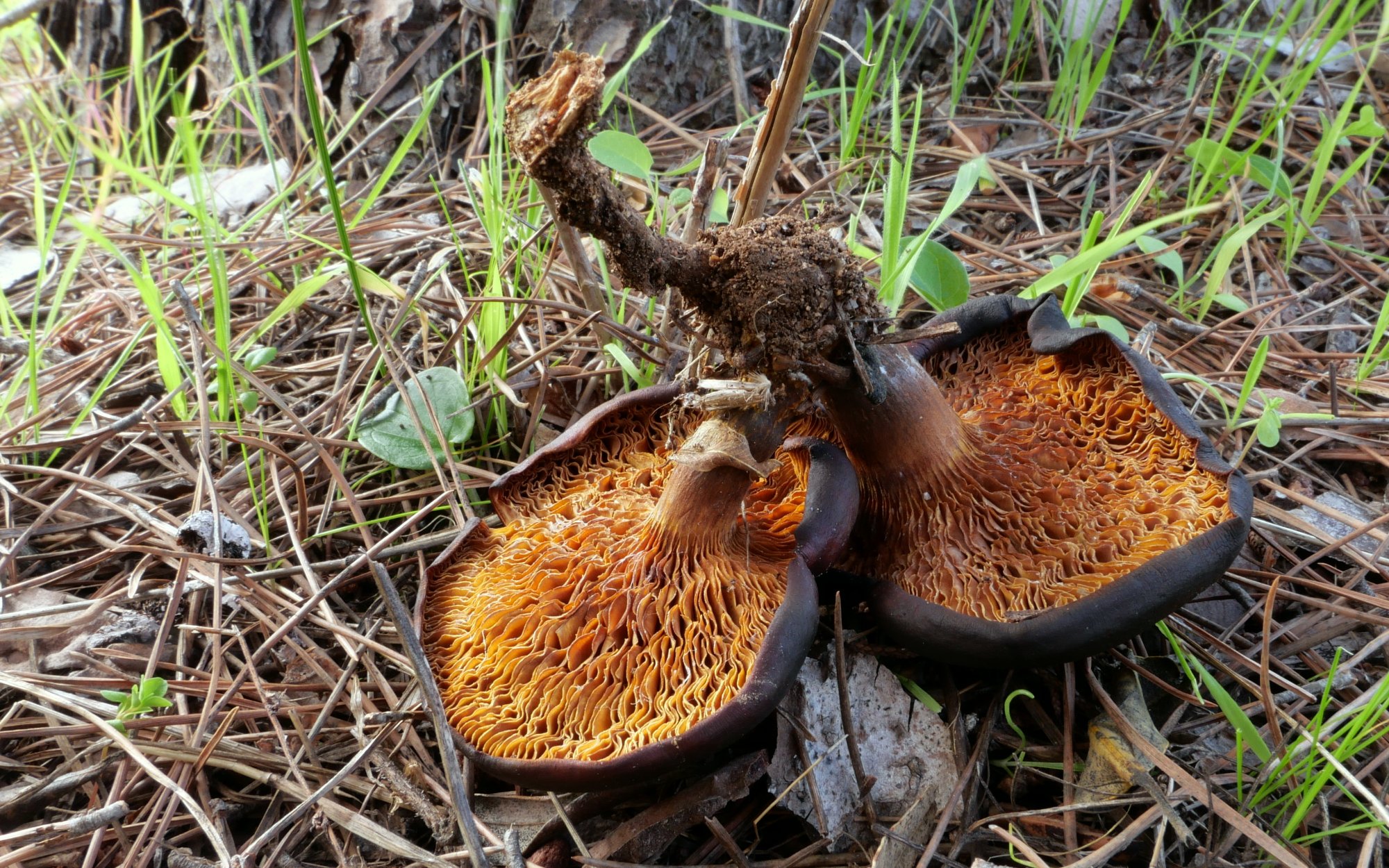Concernant la différence entre les deux espèces citées par Ustal, j'ai toujours appelé ces champignons Omphalotus olearius (je n'en ai jamais trouvé au nord de la Loire, ce qui facilite !). Je cite ce que disait Montségur (Christian Bouet) ici en 2013 :