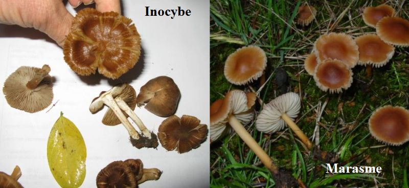 Les Lames sont serrées et grise pur chez Inocybe alors quelles sont espacées et très blanches chez les Marasmes
