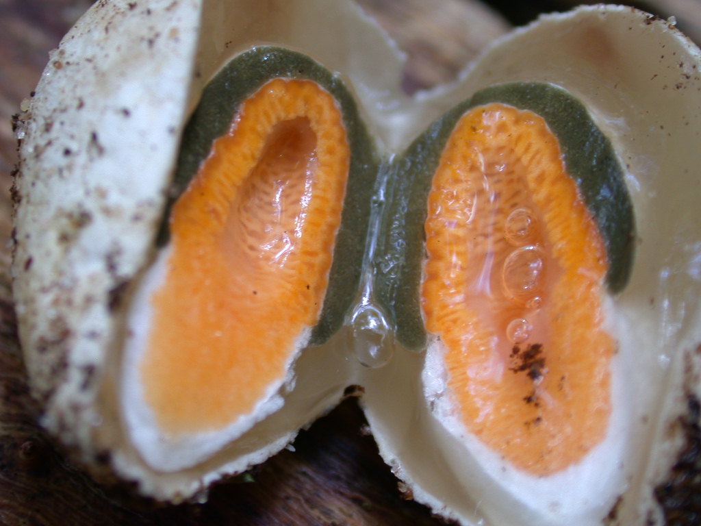 je pense de plus en plus à Clathrus ruber moi aussi: les "oeufs" de mutinus caninus sont plutôt ovales (même si ça n'est pas évident sur la photo de jipidoc) et d'autre part quand on regarde bien les premiéres photos de dominique il semble bien que l'on distingue déja sous le peridium membranneux les traces du réceptacle "grillagé" de C. ruber.. ci joint pour comparaison 2 photos (la magnifique ph. de mutinus n'est pas de moi mais recup internet)