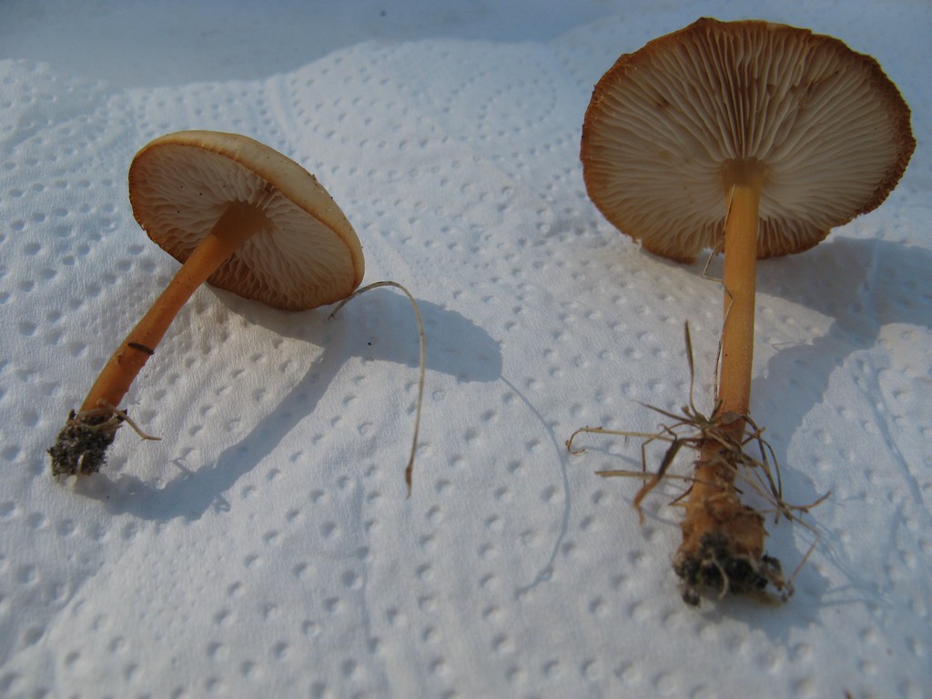 Pied : grêle, de la couleur du chapeau, clair presque blanc tout en haut. Entre 2 et 6 cm environ.