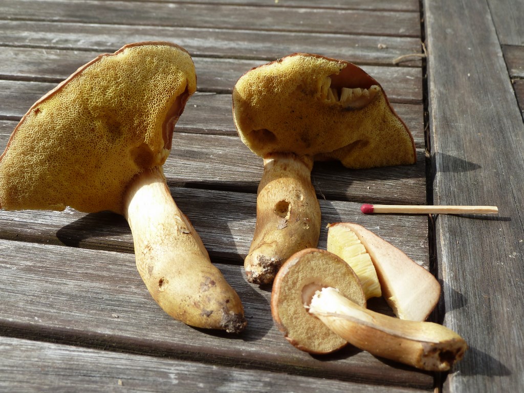 la chair de B.badius bleuit peu, encore moins lorsqu'il est sec. B.apendiculatus peut-être, le chapeau parait rosâtre, mais j'ai bien du mal à voir les couleurs...