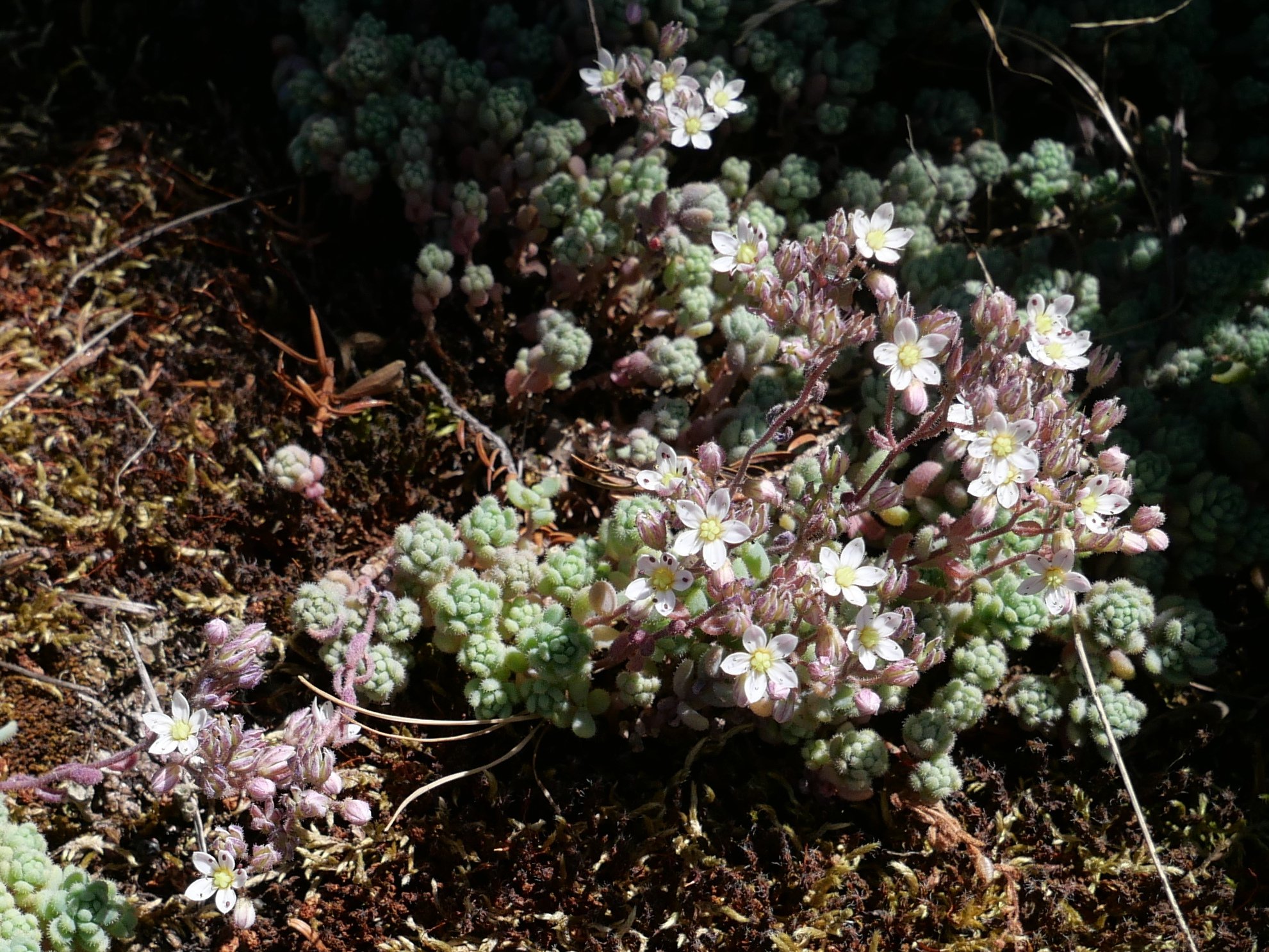 Oui, la fleur de Sedum dasyphyllum ressemble bien à ce que j'ai vu, je suis moins sûr pour le feuillage et les boutons. Et quid des tiges apparemment velues ? Aussi, la poussée opportuniste dans des buissons d'épineux est elle habituelle chez cette espèce ? Je rappelle qu'on est ici dans la végétation rase d'un col, soumise donc au vent et aux intempéries, sans parler d'éventuels brouteurs. À cette altitude et quoique situé exactement à la latitude de Rome, le massif est totalement ou partiellement enneigé de Novembre à Mai.