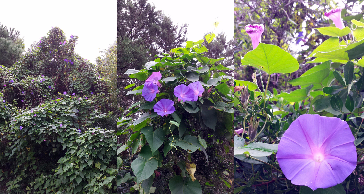J'en étais resté à Ipomea indica ou une de ses variétés mais grandiflora va sûrement mieux, quelles sont les différences entre les deux ? La couleur, la taille, l'habitat ? J'ai décrit ce dernier, quant à la taille des fleurs, elle atteignait facilement les 10 cm.