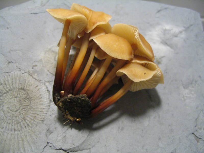 Bon les temps sont durs et je veux bien vous donner un indice déterminent ! La photo ci-dessus a été faite à une douzaine de mètres, mais cette fois ci au sol et non pas sur souche. J'avais beaucoup hésité à faire le rapprochement entre les deux groupe, mais en y pensant cela ne fait aucun doute qu'il s'agit du même champignon dans deux conditions différentes.