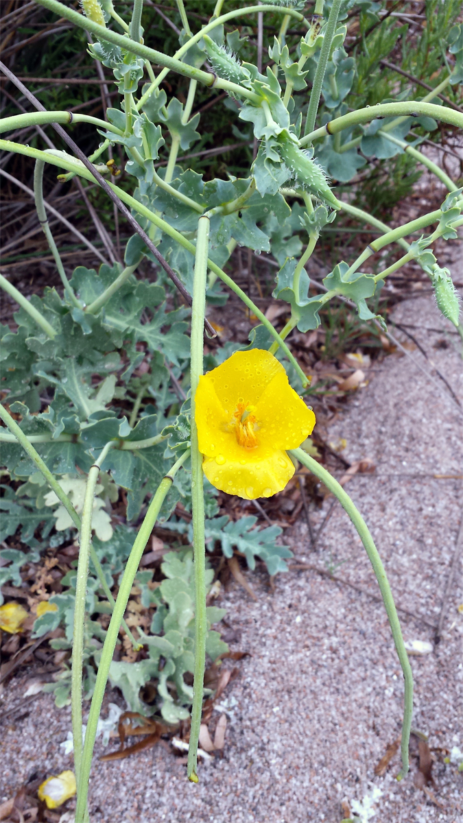 Merci, c'était bien mon idée. Étonnante papaveracée dont les capsules ressemblent à des tiges. En fin de floraison hélas, mais le jaune soutenu de ses pétales est superbe et par cette grise journée, je l'ai repérée à 100 m.