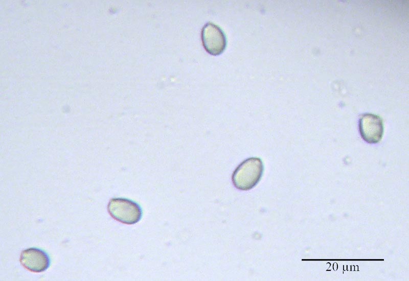 Taille des spores : 8,5-9,2 sur 5,3-5,6 µm.