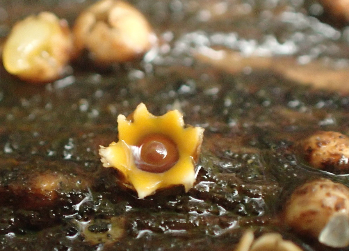 Je suis complètement largué, je n'avais jamais vu ça. Ça ne mesure pas plus de 3-4 millimètres de diamètres, et à l'état jeune, on voit une sorte d’opercule gélatineuse.
