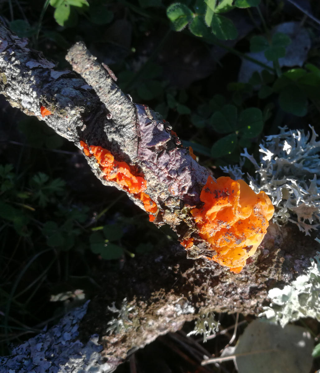 J'aurai besoin d'une confirmation, je pense qu'il s'agit de Peniophora quercina et Tremella mesanterica mais je ne suis pas tout à fait sûr du premier. Est-ce que cette photo suffit à le confirmer ?