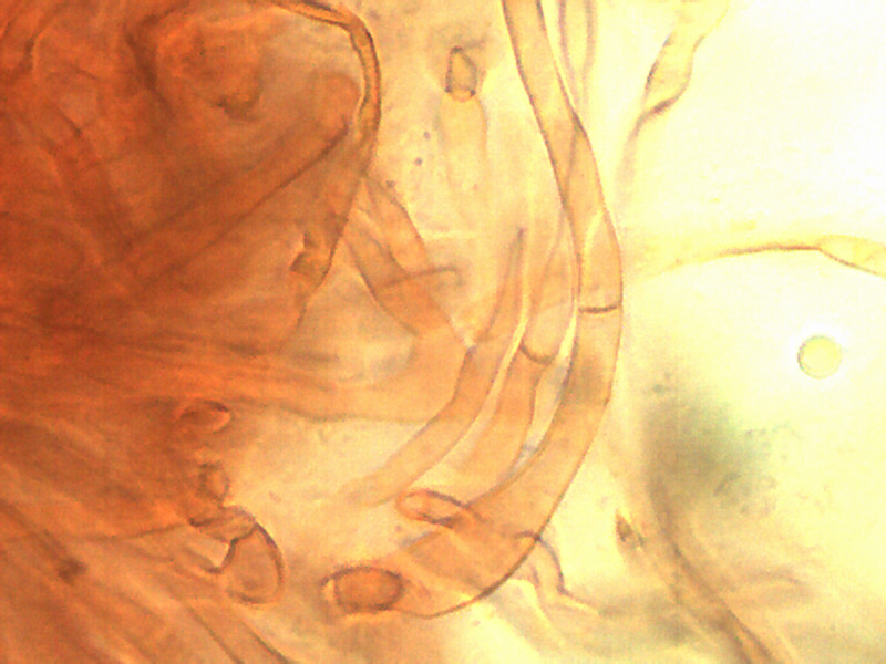 Vu la dureté de la chair et la rigidité des lames, et les premières spores ( rares ) vues au microscope au grossissement x400.