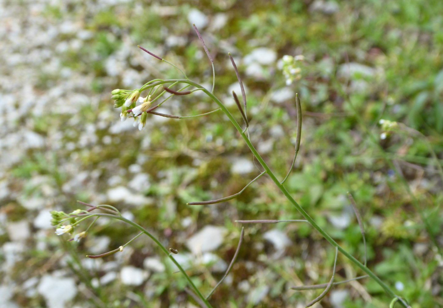 Je pense à une cardamine, peut être C. flexuosa que je n'ai jamais rencontrée ou, plus probablement, confondue avec C. hirsuta... qu'en pensez-vous ?