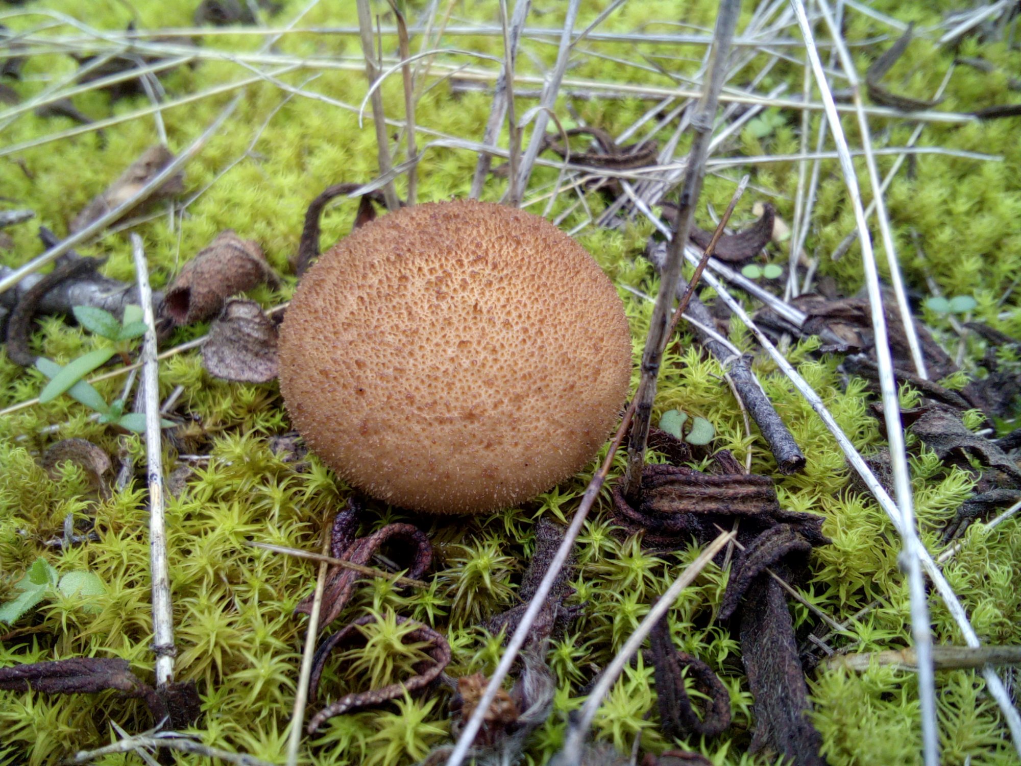 Ce n'est pas un vieux L. perlatum. Les aiguillons de L. perlatum sont très différents, chaque aiguillon est cerné de petites granules, zoomez sur les photos de la galerie pour comparer : Lycoperdon perlatum.