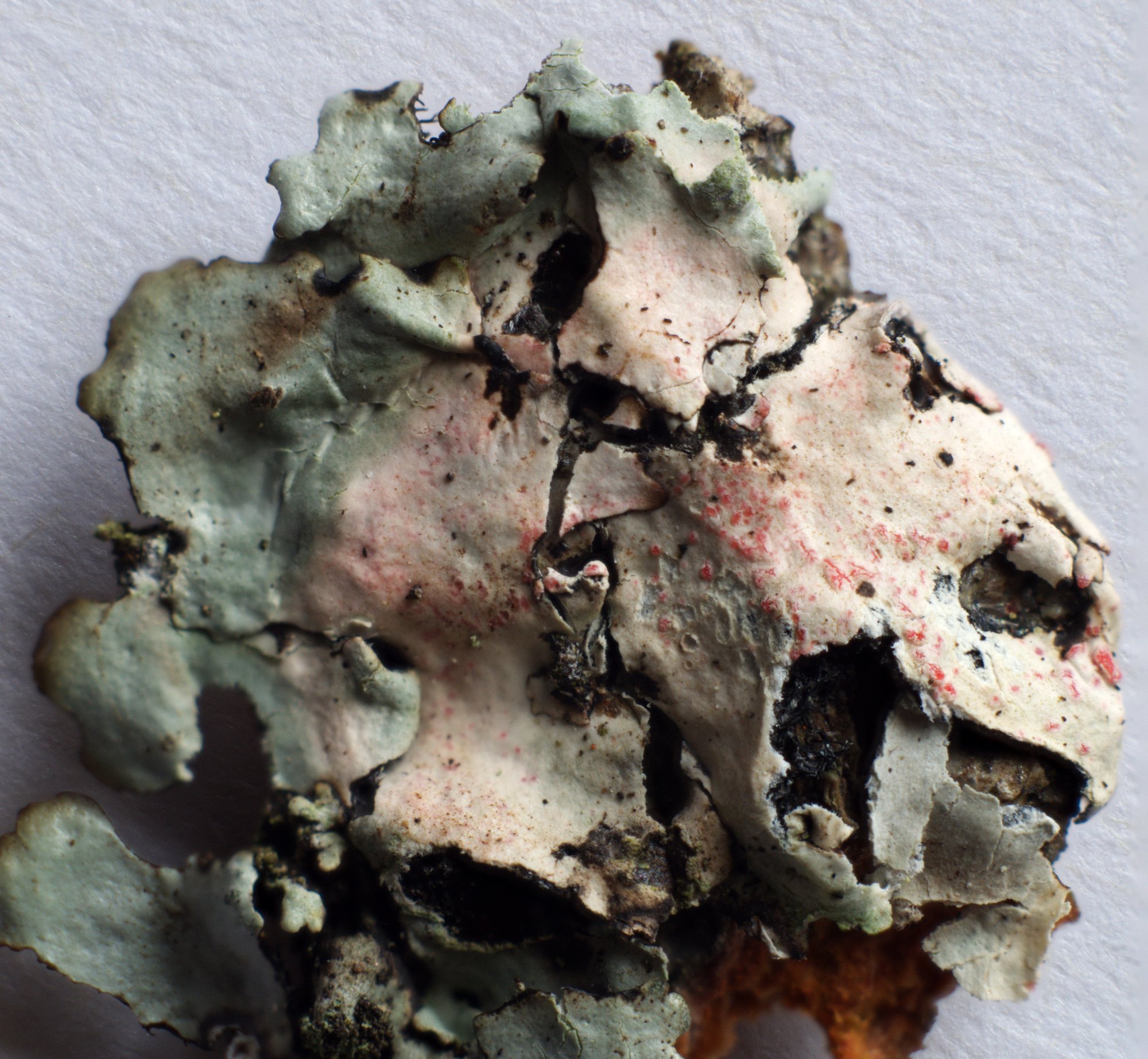 Suite à ta remarque, Fifi, j'ai observé un autre échantillon de ce parasite rose sur Parmotrema perlatum.