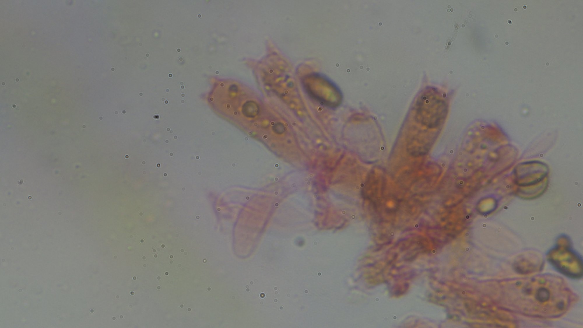 Voici des clichés, bon je n'ai pas amélioré la netteté et luminosité pour gagner du temps, toujours ces nombreuses formes piriformes mêlées aux basides, j'ai bien dissocié ma préparation pourtant et balayé au x20 pour ne rien rater.