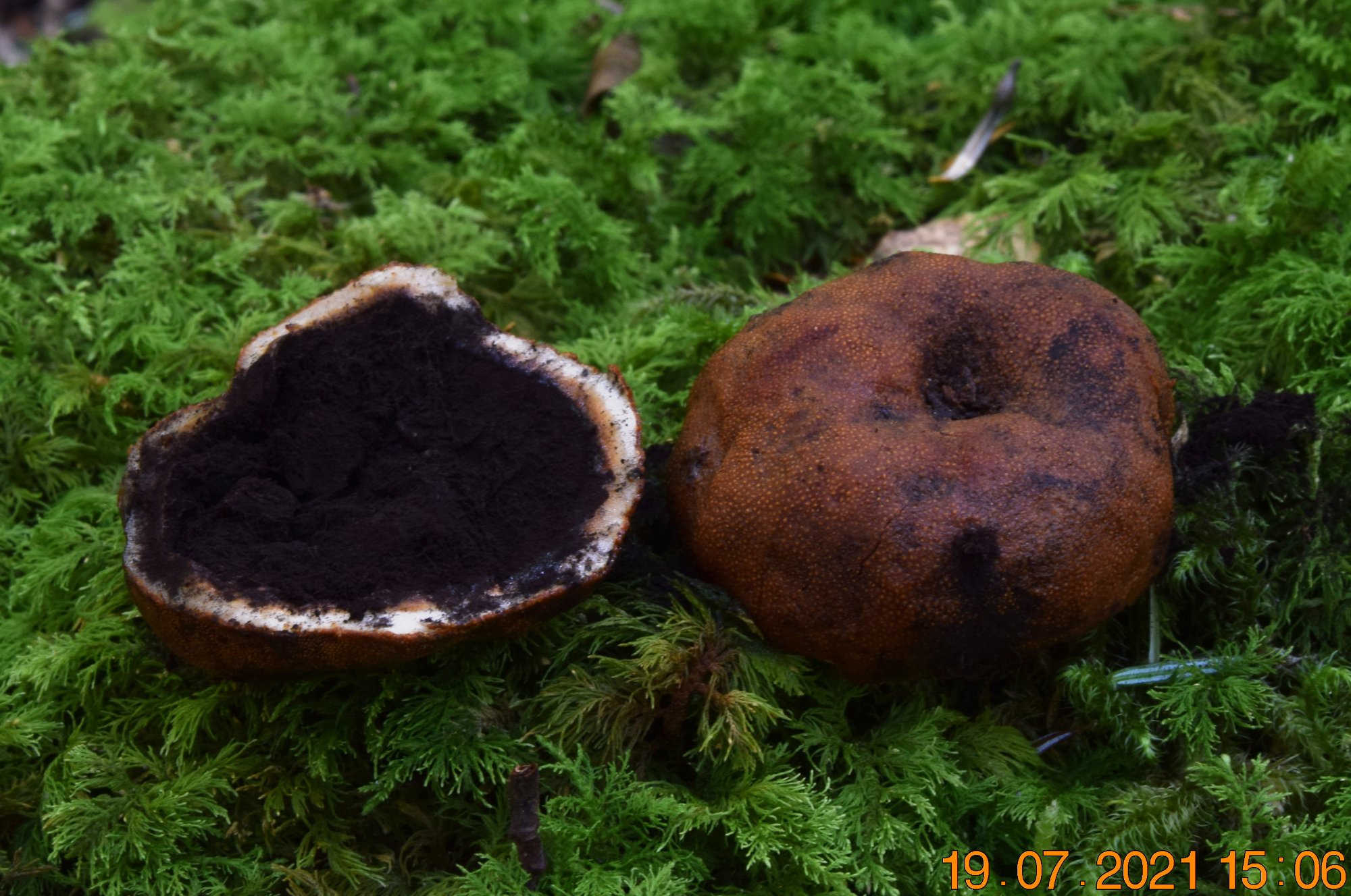 - Un péridium blanc entourant une gléba noire non marbrée.