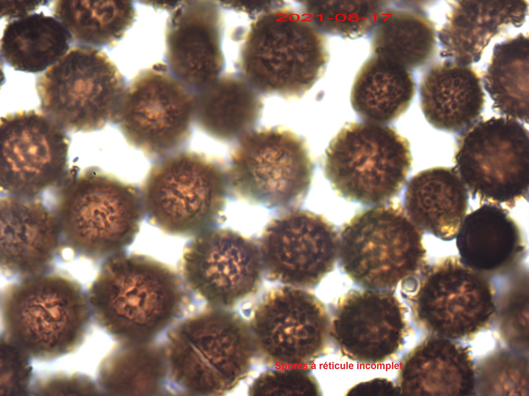 Exemplaire au stade ultime de mûrissement libérant ses spores. La marge probablement attaquée par une moisissure du plus bel effet.