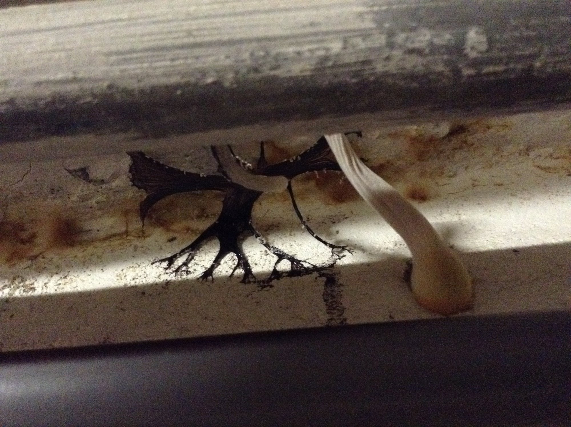 Depuis quelques jours des « champignons » se développent sur les murs et plafonds peints de cette cave.