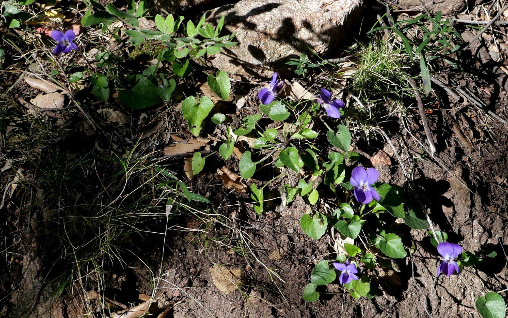 Le maquis corse n'est pas encore bien fleuri en février : juste des asphodèles aux endroits dégagés mais les innombrables cistes ne sont pas ouverts, ni les férules, les lavandes stoechas commencent à peine, l'ail, les astéracées et plein d'autres fleurs attendent avril-mai pour s'épanouir. Lorsqu'on s'élève un peu, là où il peut encore geler la nuit, on ne trouve plus guère que des crocus ! Le 23/02 sur le GR20 entre Conca et Paliri, je n'ai vu qu'eux, à la seule exception, vers 550 m, des deux violettes que voici. Pouvez-vous me dire leur nom ?