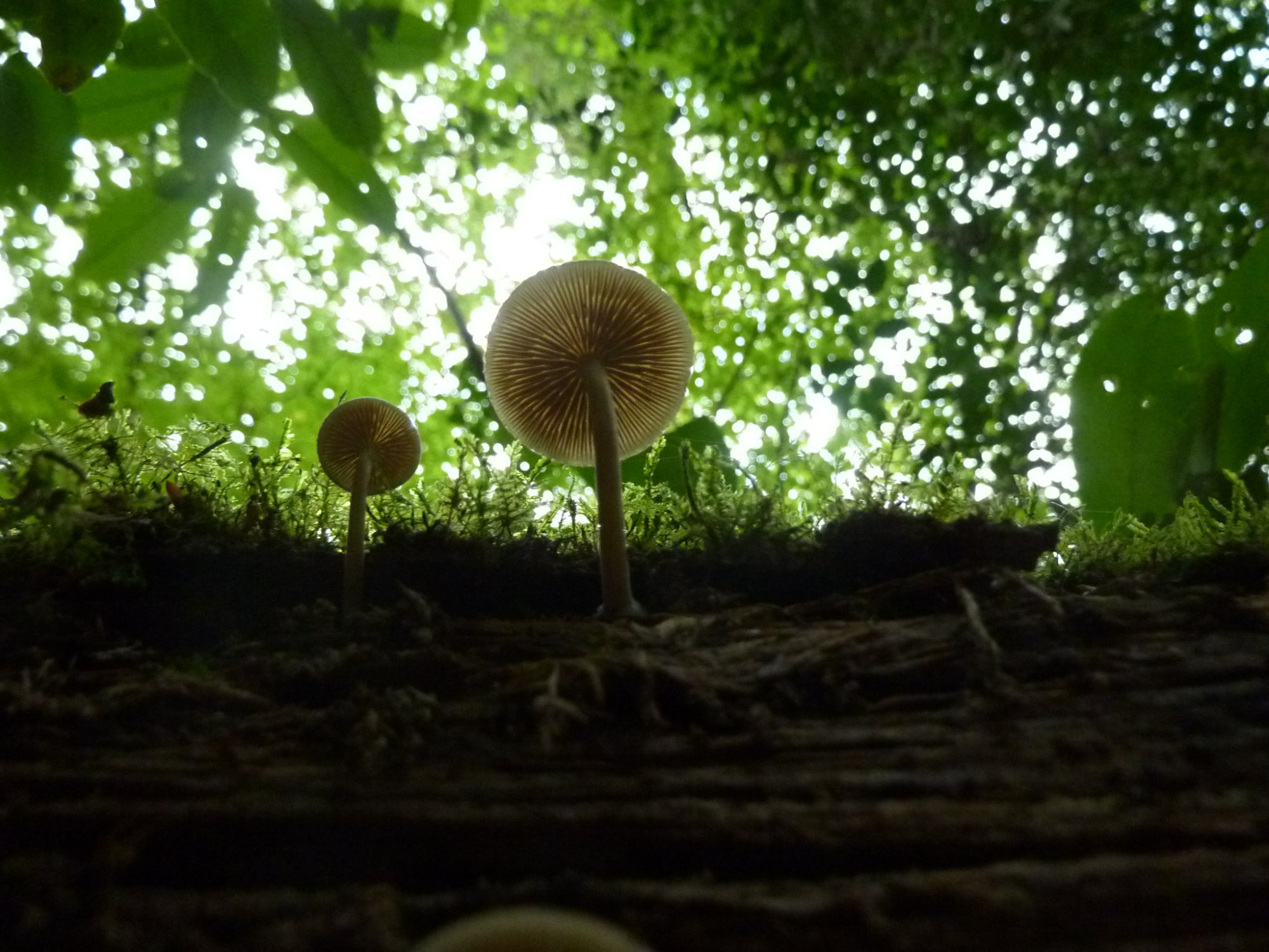 Sur un tronc de feuillu tombé, mais ne touchant pas terre (arrêté à 20cm du sol par des arbustes)