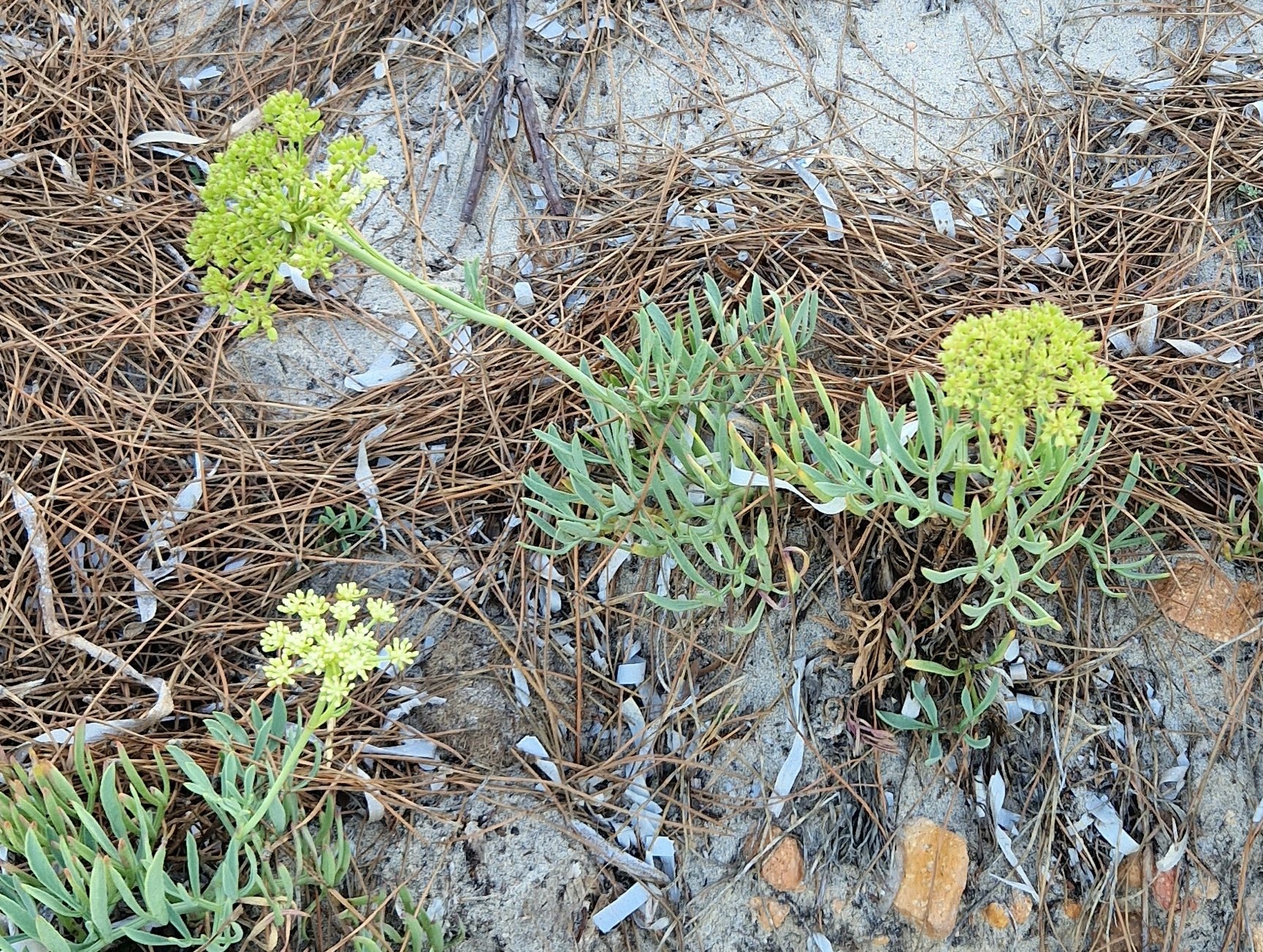 Je ne sais pas si elle perce les pierres comme l'indique un de ses noms vernaculaires mais elle s'y plait autant que dans le sable. Ici le 09/09/24, plage de Carpiccia (golfe de Porto-Novo), sur les rochers à 50 cm de l'eau (croix jaune) : Jplm